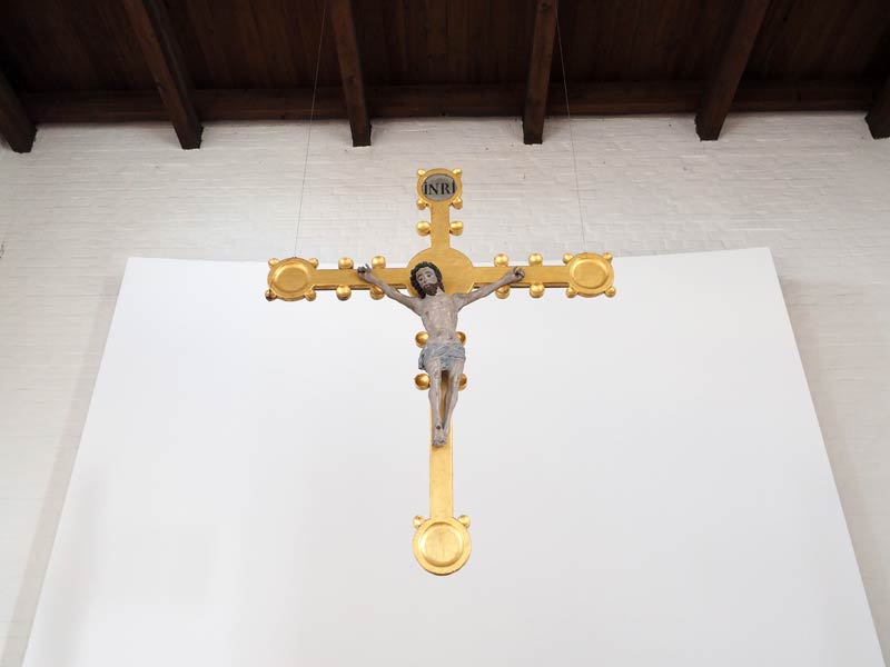 Das spätgotische Kruzifix über dem Altar ist ein Geschenk der Keitumer Kirchengemeinde.